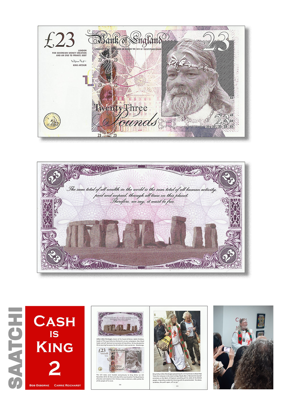 The Arthur £23 pound note was featured in the Cash is King 2 book which accompanied the 2019 exhibition of the same name at The Saatchi Gallery, London. The note was created for Arthur by the Brighton based artist 'Shardcore'.